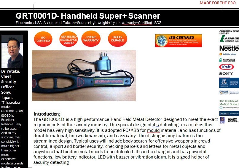 Featured item GRT0001D- Handheld Super+ Scanner With 1 Year Warranty