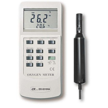 FEATURES * This Digital Oxygen Meter is supplied with a polarographic type probe with an incorporated temp. sensor which serves for precision Dissolved Oxygen(DO), Temp. measurement. * Applications for Aquarium, Medical research, Agriculture, Fish hatcheries, Laboratory, Water conditioning, Mining industrial, Schools & Colleges, Quality control... * Professional Dissolved Oxygen Meter. * The polarographic type oxygen probe with an incorporated temperature sensor, high precision measurement for * Dissolved Oxygen(DO) & Temperature measurement. * DO function, Automatic temperature compensation. * Records Max. and Min. readings. * Data hold. * RS 232 PC serial interface.