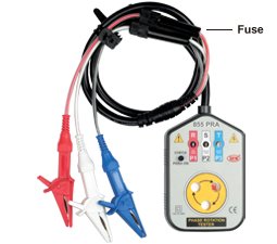 ● Two functions in one unit: open phase and phase sequence detection. ● Lamps let you determine at-a-glance if phase is open. ● Large size alligator clips for easy clipping onto switch-boards terminals. ● Checks a wide range of 3-phase power sources. ● Special test leads length are available on request. ● Push button switch is designed to minimize damage due to negligence.